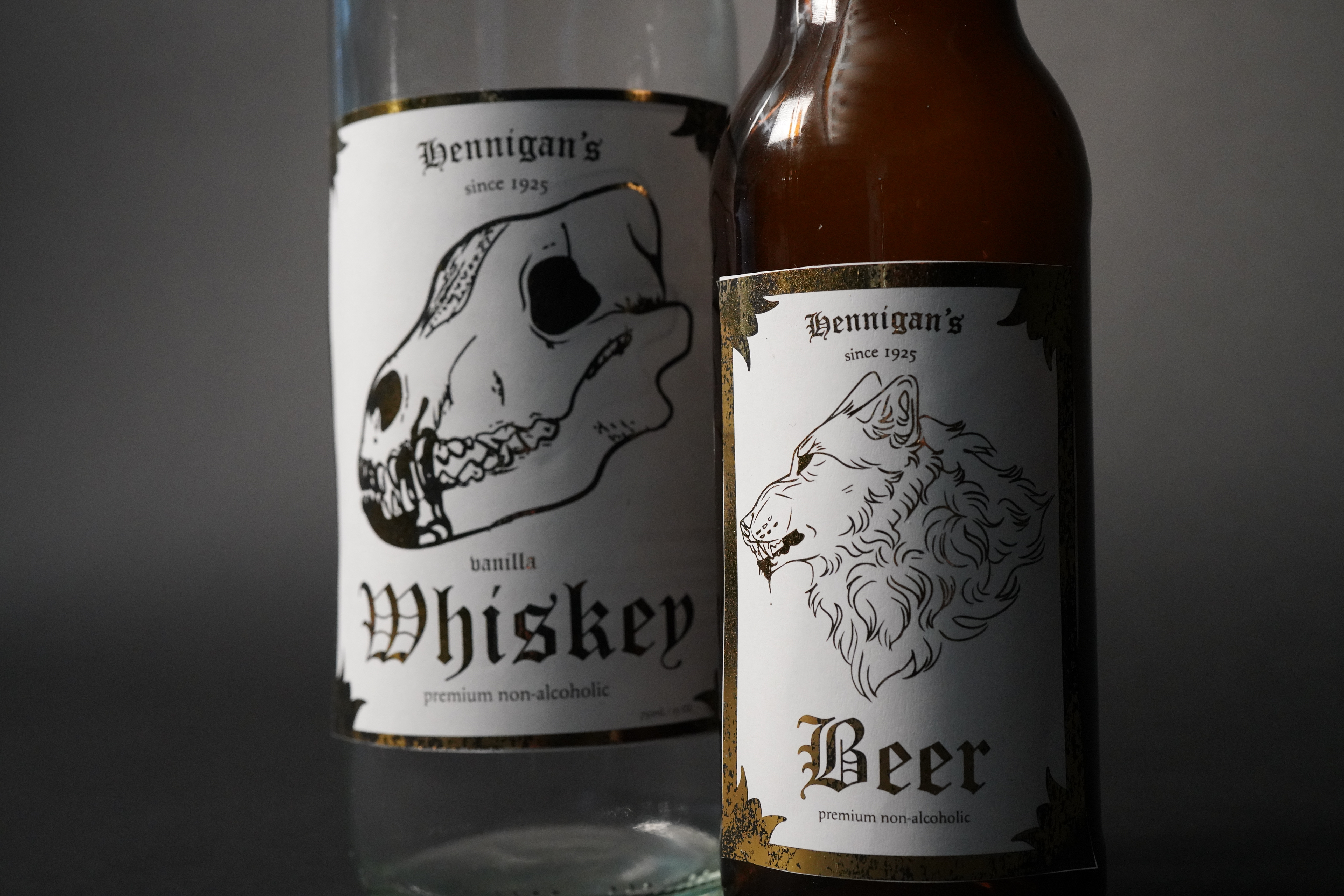 Hennigan's was a project that involved developing a brand identity and theme for an NA alcohol company. Early on, it was clear to me that many NA beverages and alcoholic beverages alike had very similar packaging design.