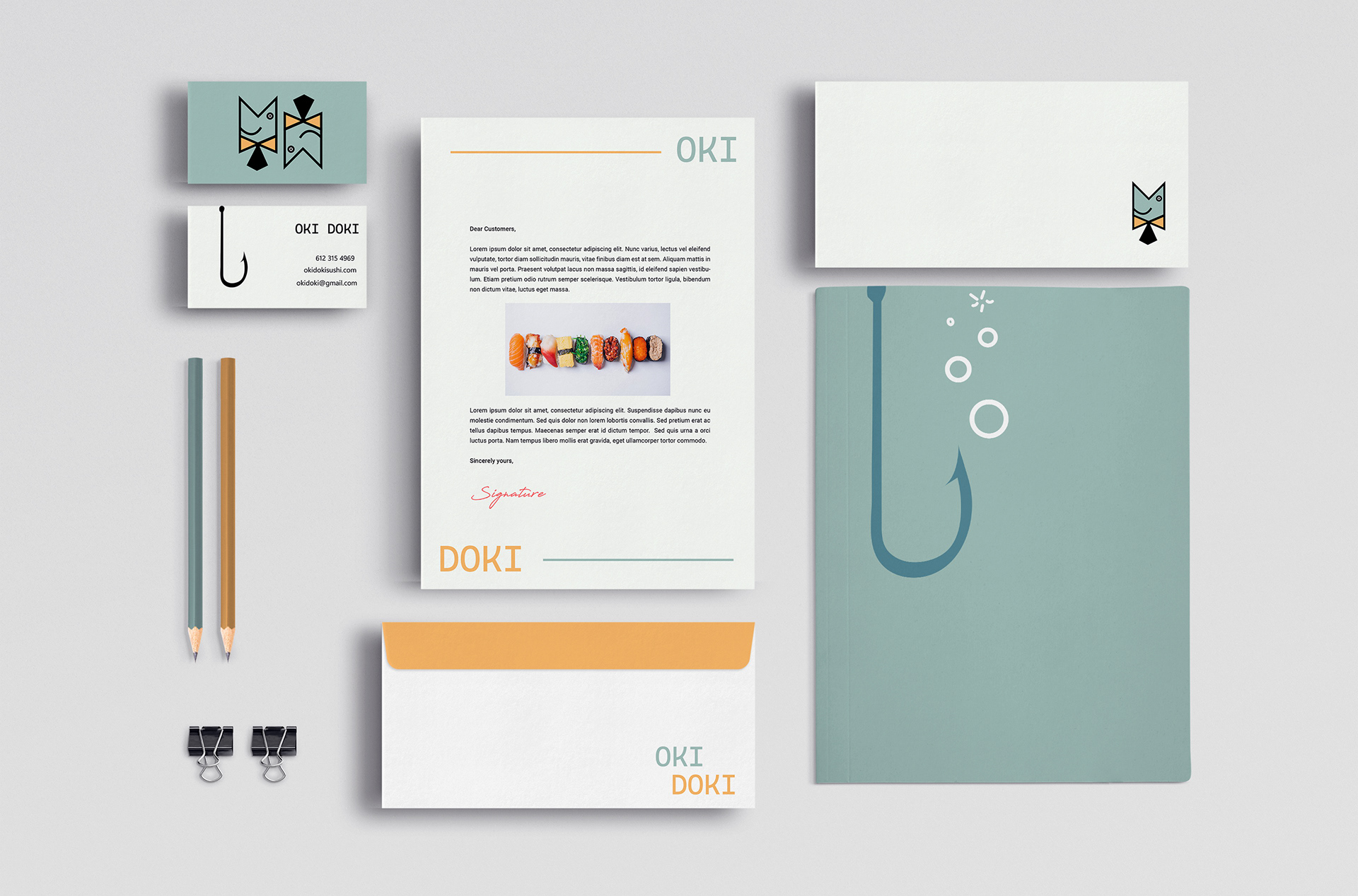 The Oki Doki Sushi Redesign project was based upon picking an already-existing brand and making something new out of it! I picked a local sushi restaurant in my area and did a full rebrand of their logo, business cards, to-go boxes, and much more!